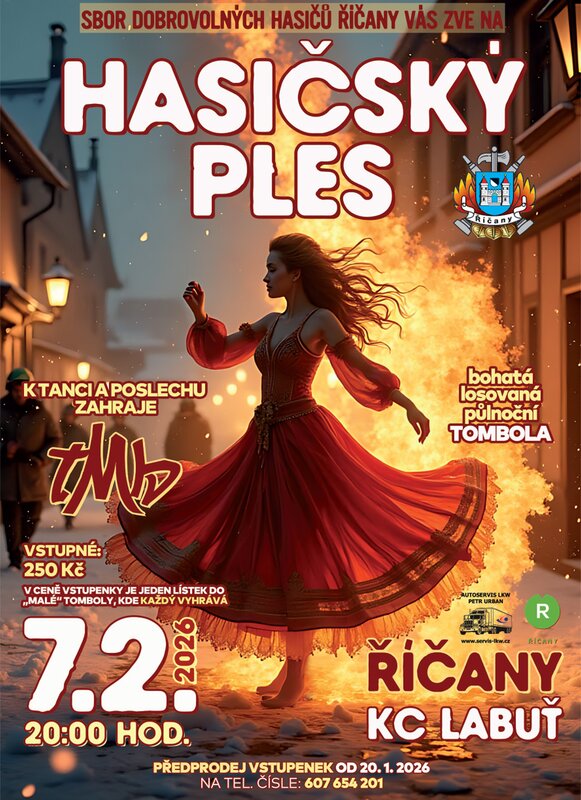 Sbor dobrovolných hasičů vás zve na HASIČSKÝ PLES. K tanci a poslechu zahraje skupina TMB. Vstupné 250,-