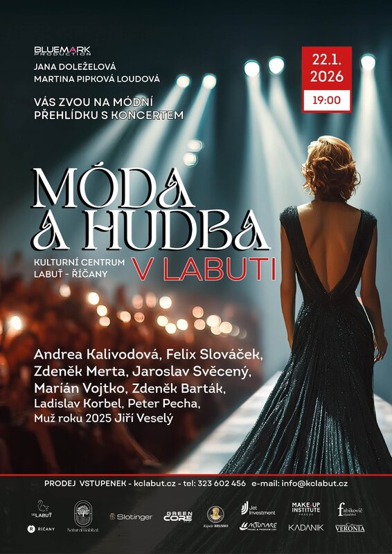 22. ledna 2026 od 19:00 v Kulturním centru Labuť v Říčanech se můžete těšit na Módní přehlídku Martiny Pipkové Loudové a exkluzivní prezentaci pánských obleků.